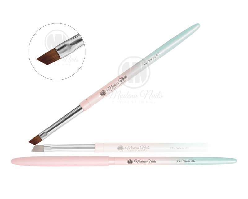 One Stroke kosi kist. Kosina kista olakšavaju izradu i najzahtjevnijih cvjetnih latica ili smile liniju. Kist ima čep koji ga štiti od oštećenja i isušivanja. Drška i čep izrađeni su od metala.