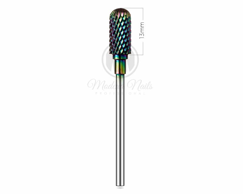 Karbidni rezač u duginim bojama dizajniran za brz rad s gelom ili akrilom.Njegov cilindrični oblik također olakšava rad blizu pregiba nokta.